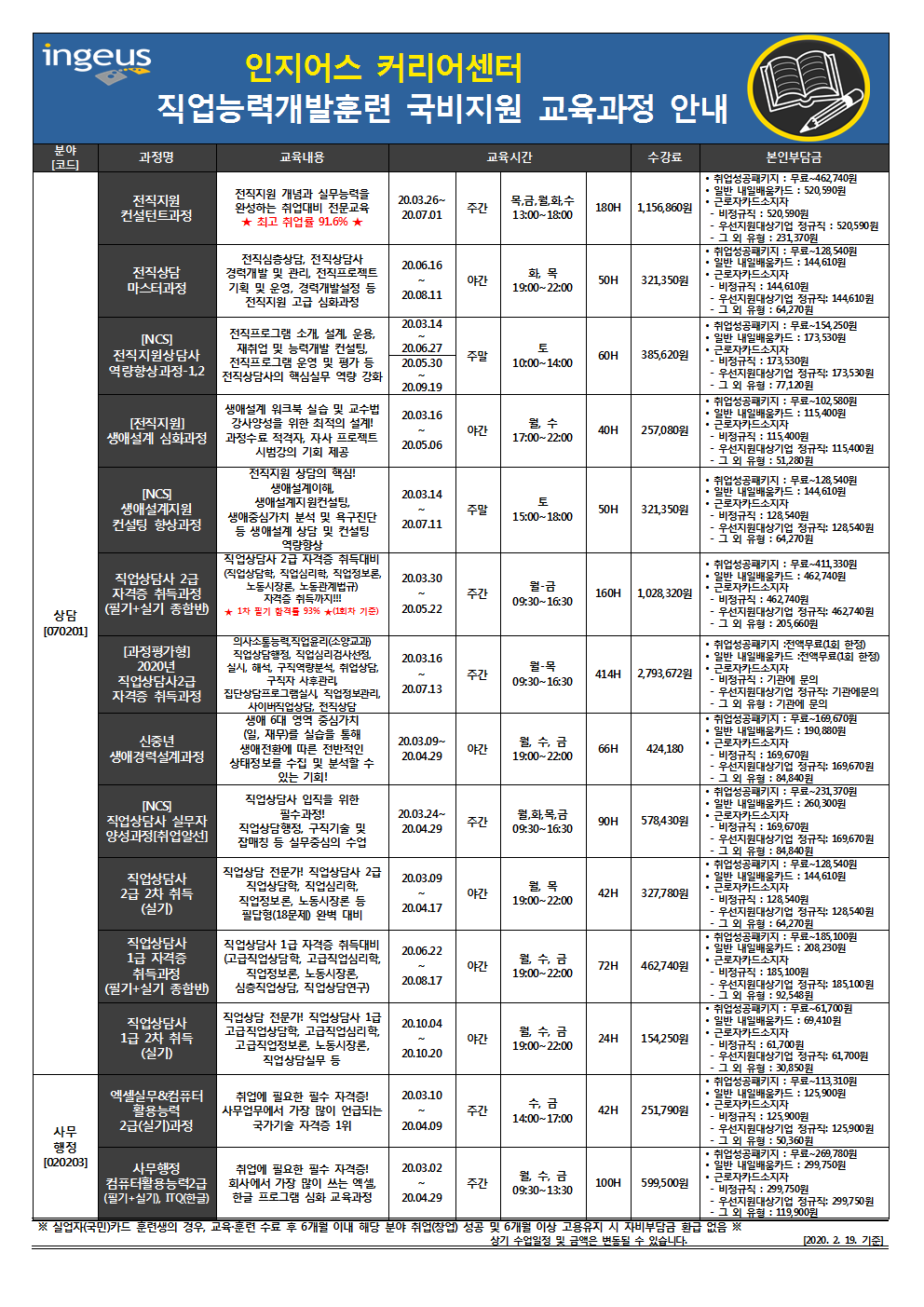 2020년 2월 인지어스 커리어센터 전체 교육과정 일정 안내-2