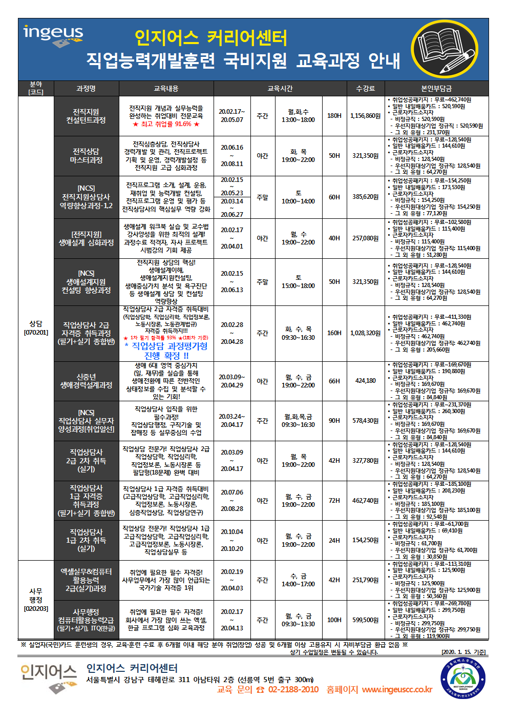 2020년 2월 인지어스 커리어센터 전체 교육과정 일정안내
