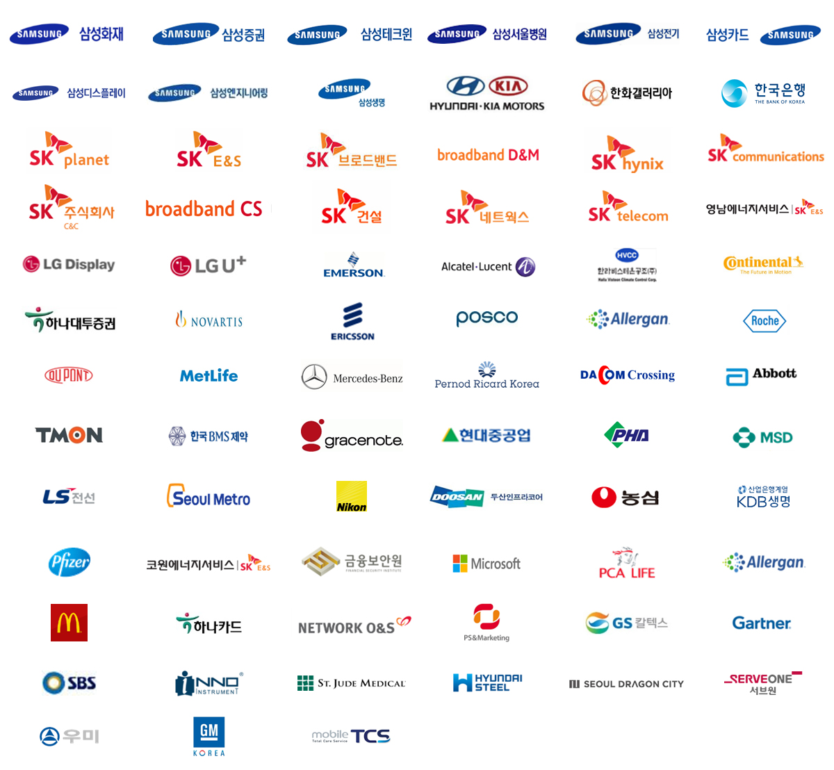 국내 주요 대기업, 외국계 기업 및 금융 기관 (일부)