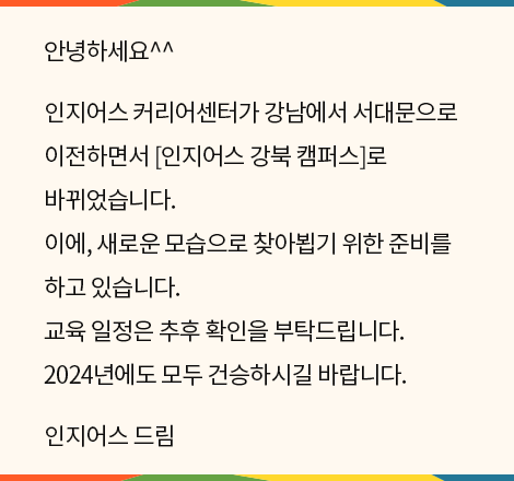 인지어스 커리어센터 서울특별시강남구 테헤란로 311 아남타워빌딩 2층 / TEL : 02-2188-2010 / FAX : 02-6203-2049